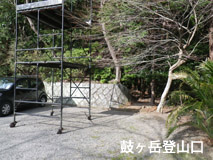 内宮参拝を終えておかげ横丁に向かう。登山口を探すのが大変そうなので、あらかじめブログで調べたがはっきりとは理解できていないので見つかるかが不安である。宗教団体の研修センター駐車場あたりに焦点を合わせて上がって行き、端っこのほう探したら足場の立っている裏側にビニールテープに「登山口」と書かれている小さなしるしを見つけた。
