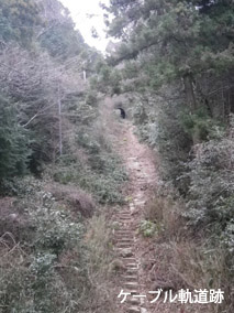 道には道祖神や規則的に一丁~二十二丁の石碑があるので目安となる。途中ケーブルカー道のあとがあり、登山道は橋で上を横切る形となる。山の上方面を見ると、トンネルも確認でき奈良の生駒山のケーブルカーを思い浮かべるべくかつての往来を偲ぶ(知ってるんか?)