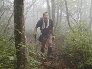 ちょっとは雲も取れてきたかな? 頂上目指して出発。