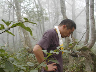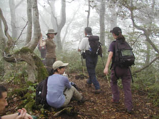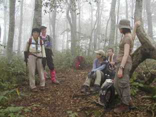 標高が下がるにつれ雲の中に入り、またもやジメジメ。さすがに体力が奪われ一休みします。