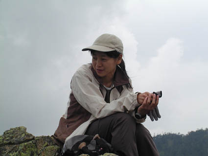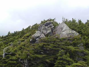 ヤバイ! 三人とも烏帽子岩の避雷針を見てヒヤリ。