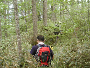 烏帽子岳がはっきりと見えます。あそこから一気に下ってきたんですね。