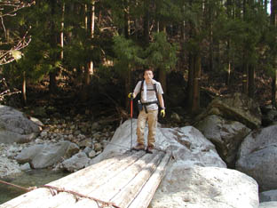 いきなり登山道がわからなくなりました。と思ったら立派な丸太橋がありました。