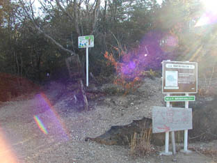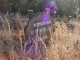管理車道入口の看板です。自然休養林の中だけあって木製ですね。