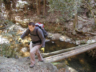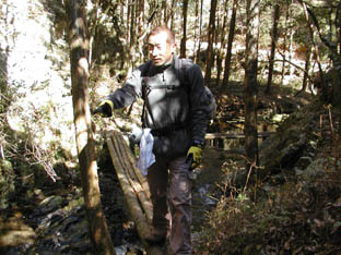 今度はルートからそれて八曽乙女滝へ。しかし木の橋がすごく不安定。すかさず木村さんは下へ。