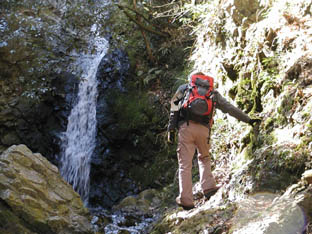 滑りやすい足下に気をつけて、何とか滝に到着。