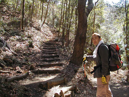 ちょっと戻り、岩見山に登ります。いきなり延々と続く階段。さて、行きますか。