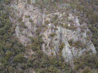 巌頭洞方面を見るとむき出しの岩が見えます。