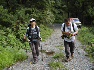 路肩に車をを停めて登山の準備。トモちゃんもまたまた参加です。すっかり準レギュラー化してしまいした。