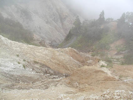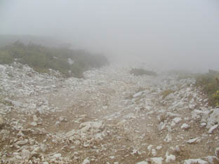 更に進むと、今度は左手に崩落が・・・ 頂上はまだでしょうか?