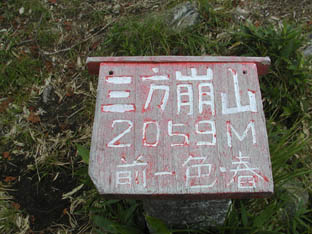 誰が作ったのか、頂上の標識が三角点の上に置いてありました。