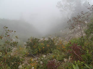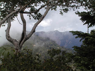 一瞬ガスが切れ、白山方面が見えましたが、潅木に遮られどれがどれだかわかりませんでした。
