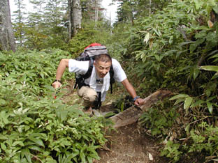 それにしてもキツイ登山道。歯を食いしばって登ります。